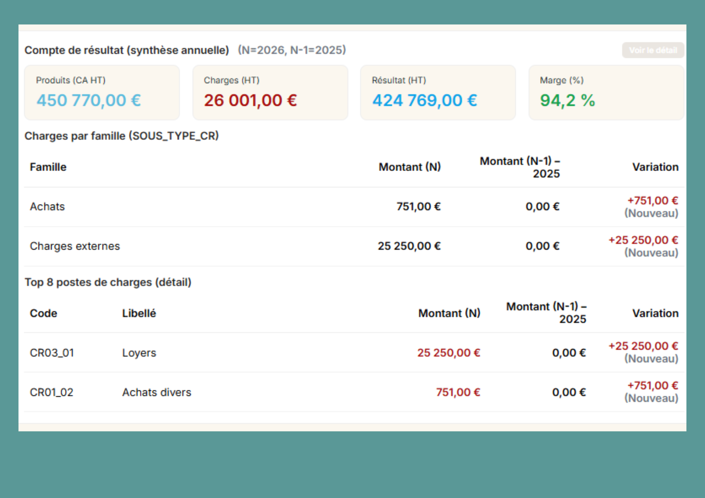 Visualisez l’activité et la rentabilité avec des indicateurs comptables et de pilotage.